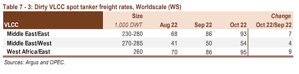 The tanker market improved considerably, during the month of October, OPEC said in its latest monthly report. Very Large Crude Carrier (VLCC) rates continued moving higher in October, with gains seen on all major routes. Spot VLCC rates on the Middle East-to-East route rose 8%, while on the West Africa-to-East route, they gained 10%. Rates for midsize Suezmax and Aframax routes were broadly higher. Suezmax rates on the US Gulf Coast (USGC)-to-Europe route rose 16%, while Aframax spot rates on the Cross-Med route increased by 30%. All monitored routes were well above levels seen in the same month last year. Clean rates saw diverging trends, with losses East of Suez outweighing gains West of Suez. On the Middle East-to-East route, clean spot rates fell 38% m-o-m in October.
